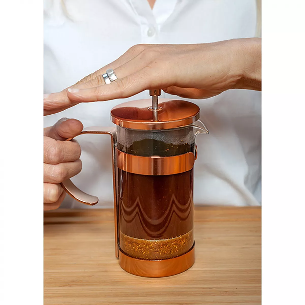 - プランジャーで圧力をかけてプレスし、ルイボスを抽出します
